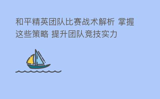 和平精英团队比赛战术解析 掌握这些策略 提升团队竞技实力