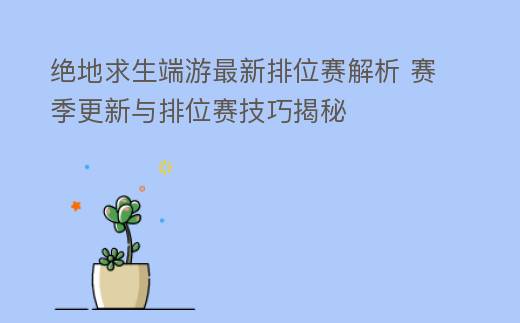 绝地求生端游最新排位赛解析 赛季更新与排位赛技巧揭秘