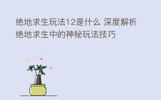在《绝地求生》这款广受欢迎的射击游戏中,玩家们总是追求更高的技巧和独特的玩法。今天,我们就来探讨一下“绝地求生玩法12是什么”,并为你揭秘其中的奥秘。