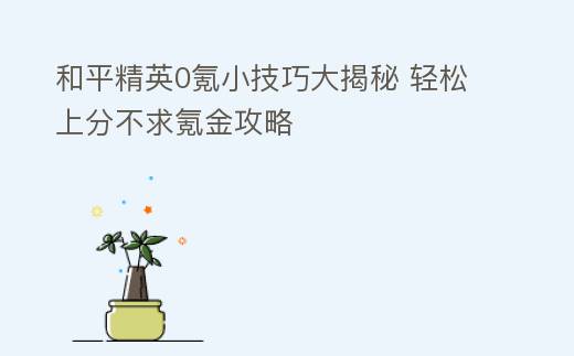 摘要:和平精英0氪小技巧:轻松畅玩不求人在《和平精英》这款广受欢迎的射击游戏中,许多玩家渴望在享受游戏乐趣的不花费一分钱。那么,如何才能做到“0氪”也能畅玩呢?本文将为你揭秘一系列实用的0氪小技巧,让你在游戏中如鱼得水,轻松应对各种挑战。一,和平精英0氪小技巧大揭秘 轻松上分不求氪金攻略