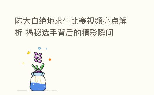 陈大白绝地求生比赛视频亮点解析 揭秘选手背后的精彩瞬间