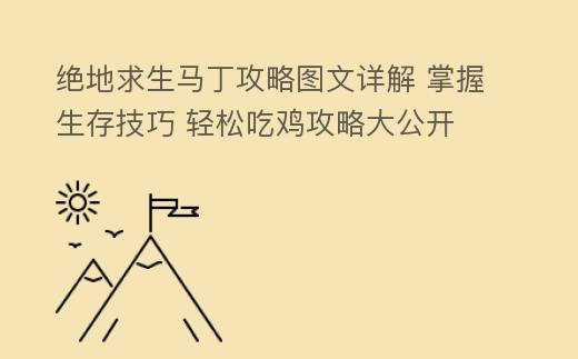 摘要:绝地求生马丁攻略图文:全面解析生存技巧与战术布局在《绝地求生》这款广受欢迎的生存竞技游戏中,马丁(M416)作为一把经典步枪,凭借其稳定的性能和较高的伤害输出,成为了许多玩家的首选。本文将围绕绝地求生马丁攻略图文,详细解析其玩法、解决办法以及战术布局,帮助玩家在游戏中更好地运用这把武器,绝地求生马丁攻略图文详解 掌握生存技巧 轻松吃鸡攻略大公开