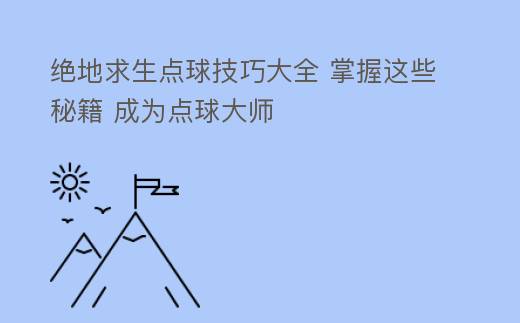 《绝地求生》点球技巧大全包括瞄准技巧、射击技巧、心理素质和实战技巧。通过掌握这些技巧,相信你能够在点球环节中取得更好的成绩。以下是一些与点球技巧相关的百度搜索关键词: