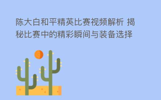 陈大白和平精英比赛视频解析 揭秘比赛中的精彩瞬间与装备选择