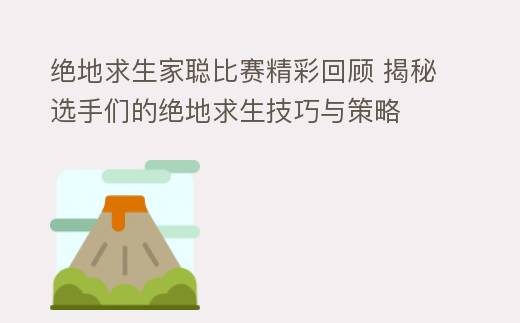 绝地求生家聪比赛精彩回顾 揭秘选手们的绝地求生技巧与策略