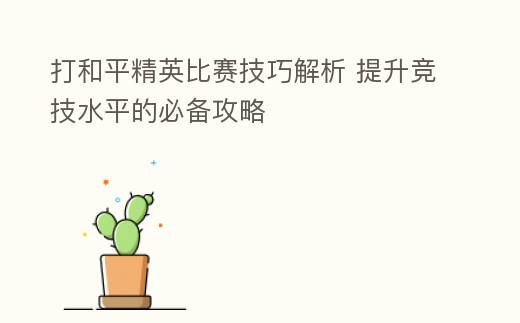 摘要:《和平精英比赛技巧:提升竞技水平的秘籍》在紧张刺激的和平精英比赛中,每一位玩家都渴望在战场上脱颖而出,成为团队的核心力量。要想在激烈的竞争中立于不败之地,不仅需要过硬的技术,更需要掌握一系列的比赛技巧。本文将为你揭秘和平精英比赛中的关键技巧,助你在战场上所向披靡。一、精准定位,把握时机在和平精英比赛中,精准的定位是取胜的关键。玩家需要时刻关注地图,打和平精英比赛技巧解析 提升竞技水平的必备攻略