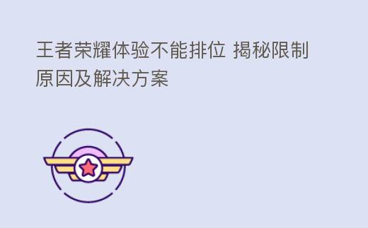 王者荣耀体验不能排位 揭秘限制原因及解决方案