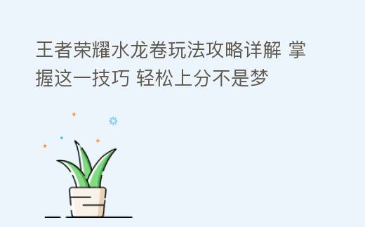 王者荣耀水龙卷玩法攻略详解 掌握这一技巧 轻松上分不是梦