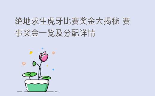 摘要:前言:随着电子竞技行业的蓬勃发展,绝地求生(PUBG)作为一款备受欢迎的竞技游戏,吸引了无数玩家投身其中。而虎牙直播平台举办的绝地求生比赛,更是吸引了众多顶尖选手的参与。那么,这些比赛的奖金究竟有多丰厚?本文将为您揭秘绝地求生虎牙比赛奖金背后的故事。一、虎,绝地求生虎牙比赛奖金大揭秘 赛事奖金一览及分配详情