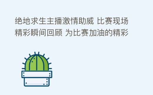 绝地求生主播为比赛加油,是一种独特的文化现象。他们通过激情四溢的解说和加油声,为比赛增添了无限活力。在今后的比赛中,我们期待看到更多精彩的主播加油表演。