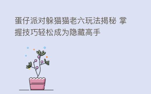 前言:在《蛋仔派对》这款热门的多人在线游戏中,躲猫猫老六玩法因其独特的游戏体验和挑战性,成为了玩家们津津乐道的话题。作为游戏中的一种角色,老六需要巧妙地躲避其他玩家的追捕,而其他玩家则需要发挥智慧,找出老六的位置。本文将详细解析蛋仔派对躲猫猫老六玩法,助你轻松成为“猫猫”高手。