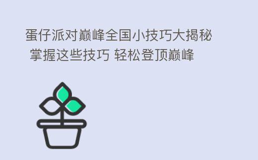 摘要:蛋仔派对巅峰全国小技巧:轻松登顶,技巧攻略大揭秘在《蛋仔派对》这款风靡一时的休闲竞技游戏中,巅峰全国赛无疑是最吸引玩家眼球的活动之一。要想在比赛中脱颖而出,掌握一些实用的小技巧至关重要。本文将为你揭秘《蛋仔派对巅峰全国小技巧》,助你轻松登顶!一、熟悉地图与道具在比赛中,地图和道具的熟悉程度直接影响到你的表现。要熟悉各个地图的布局,了解哪些地方是必争之地,哪些地方可以巧,蛋仔派对巅峰全国小技巧大揭秘 掌握这些技巧 轻松登顶巅峰