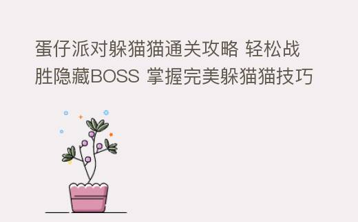 摘要:蛋仔派对躲猫猫通关攻略:轻松成为隐藏大师在《蛋仔派对》这款充满欢乐的多人在线游戏中,躲猫猫模式无疑是最受欢迎的玩法之一。作为一款独特的隐藏与寻找游戏,躲猫猫模式考验玩家的观察力、反应速度和策略布局。本文将为你详细解析如何轻松通关躲猫猫模式,成为隐藏大师。一、选择合适的角色和蛋仔在躲猫猫模式中,选择一个合适的角色和蛋仔至,蛋仔派对躲猫猫通关攻略 轻松战胜隐藏BOSS 掌握完美躲猫猫技巧