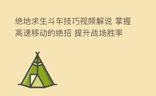 掌握斗车技巧,是《绝地求生》玩家在战场上的一大优势。通过本文的斗车技巧视频解说,相信您已经对斗车的驾驶有了更深入的了解。在游戏中,不断练习,提高自己的驾驶技巧,成为战场上的速度与激情驾驭者。