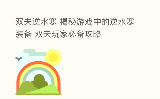 双夫逆水寒 揭秘游戏中的逆水寒装备 双夫玩家必备攻略