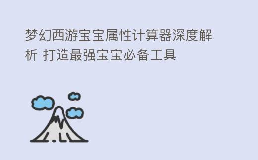 前言:在《梦幻西游》这款经典手机游戏中,宝宝作为玩家的重要伙伴,其属性的高低直接影响到战斗力的强弱。为了帮助玩家更好地了解和计算宝宝的属性,梦幻西游宝宝属性计算器应运而生。本文将详细介绍这款计算器的功能和使用技巧,助你打造最强宝宝。